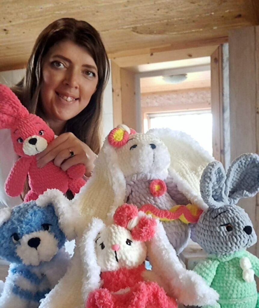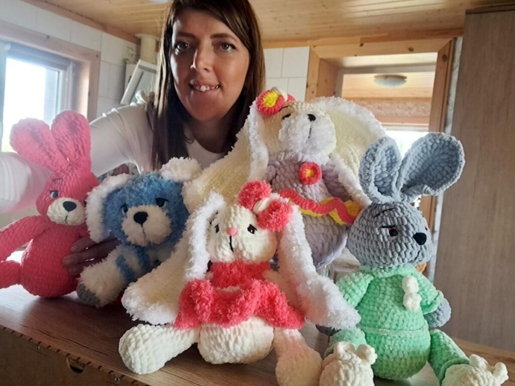 Rie­ta­vvo savivaldybės, Drobs­tų kai­me gy­ve­nan­ti Si­mo­na Vieš­niaus­kie­nė – kū­ry­bin­ga ir darbš­ti mo­te­ris, at­ra­du­si gy­ve­ni­mo džiaugs­mą pa­pras­tuo­se ir pra­smin­guo­se da­ly­kuo­se. Išė­ju­si į vai­ko prie­žiū­ros ato­sto­gas ir iš­mo­ku­si ner­ti, da­bar drobs­tiš­kė ku­ria mie­lus vai­kiš­kus žais­liu­kus, ku­rie džiu­gi­na ma­žuo­sius. Mo­ters kū­ry­bin­gu­mas reiš­kia­si ir dar­že, kur jau penk­tus me­tus ji au­gi­na ar­bū­zus – dar re­tus sve­čius lie­tu­vių lys­vė­se.