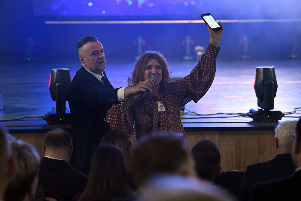 Vedėjas ragino ne tik įmesti norimą sumą į fojė pastatytas aukų dėžutes, bet ir pasinaudoti ant scenos didžiuliame ekrane rodytu kodu ir vos per kelias sekundes pervesti paramą.