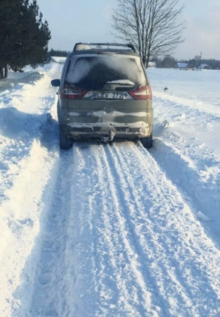 Vy­ras pa­sa­ko­jo, kad žie­mos me­tu Sruo­jos gat­vė, kur gy­ve­na jo šei­ma, nė­ra tin­ka­mai va­lo­ma, tad pa­sni­gus be­lie­ka tik spė­lio­ti – iš­va­žiuo­si ar ne. Ir tą ry­tą, jam va­žiuo­jant ne­va­ly­tu ke­liu, prie­šais jį pra­va­žia­vu­si šiukš­lia­ve­žė įspau­dė gi­lias vė­žes. Ban­dy­da­mas jas įveik­ti, vy­ras sa­kė už­stri­gęs. Ban­dant iš­va­žiuo­ti, jo au­to­mo­bi­lis bu­vo ap­ga­din­tas, tad rei­kės re­mon­to.