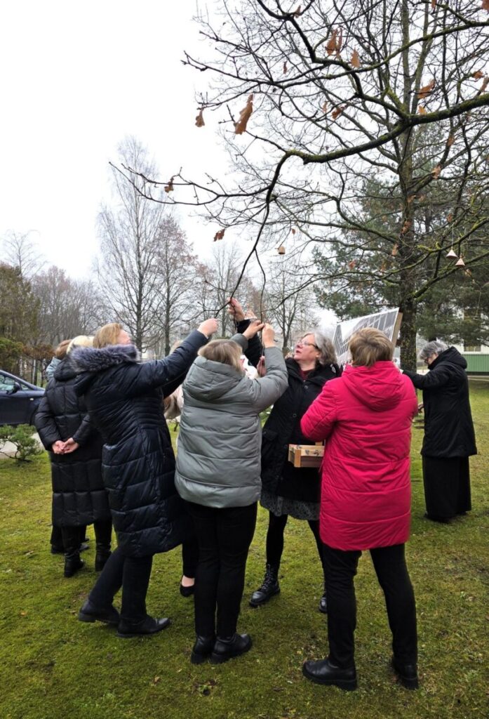 Linos RUIBIENĖS nuotr.Gruodžio 17 dieną mokyklos kieme, ąžuolų giraitėje, susirinkę pedagogai dar kartą prisiminė mokyklos istoriją ir nueitą kelią, kurį primins renginio dalyvių ant medžio šakų pakabinti simboliniai varpeliai.